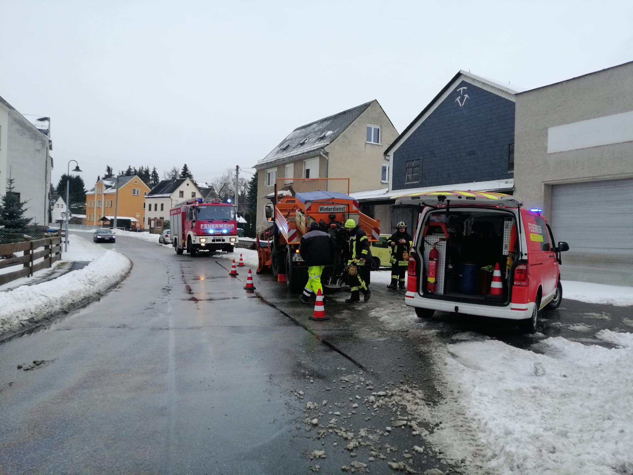 Das gemeindeeigene Räumfahrzeug war Anlass für den zweiten Einsatz des Jahres. Durch technischen Defekt zog sich eine enorme Dieselspur über 5 Km durch den Ort. Teilweise war die gesamte Fahrbahn betroffen. Durch die Feuerwehr wurden Gefahrenbereiche wie Kurven abgestumpft und Einläufe mit Ölbindemittel gesichert. Die weitere Beseitigung übernahm ein Spezialunternehmen.
