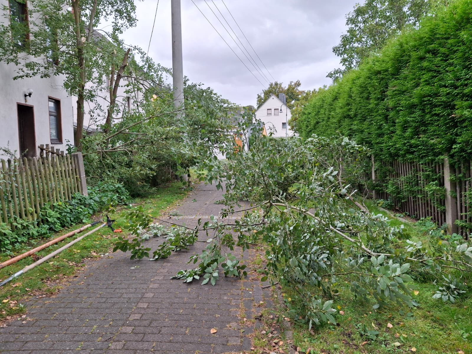 Am Sonntag Morgen um 06:48 Uhr alarmierte uns die Leitstelle Zwickau in die Obere Hauptstraße. Hier war von der Friedenseiche ein großer Ast abgebrochen, welcher den Radweg blockierte und die Telefonleitung herunter gerissen hatte. Der Schaden war schnell beseitigt, die Telekom informiert und der Einsatz um 7:35 Uhr beendet.