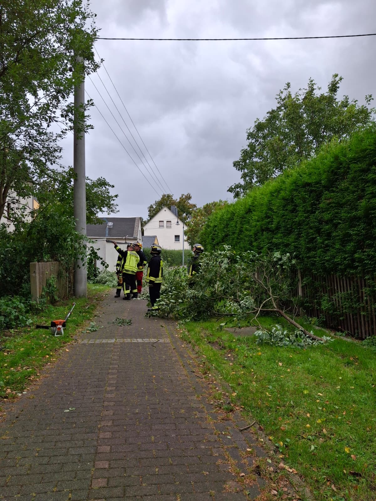 Ein mittig gebrochener Kirchbaum drohte auf die Straße zu stürzen.